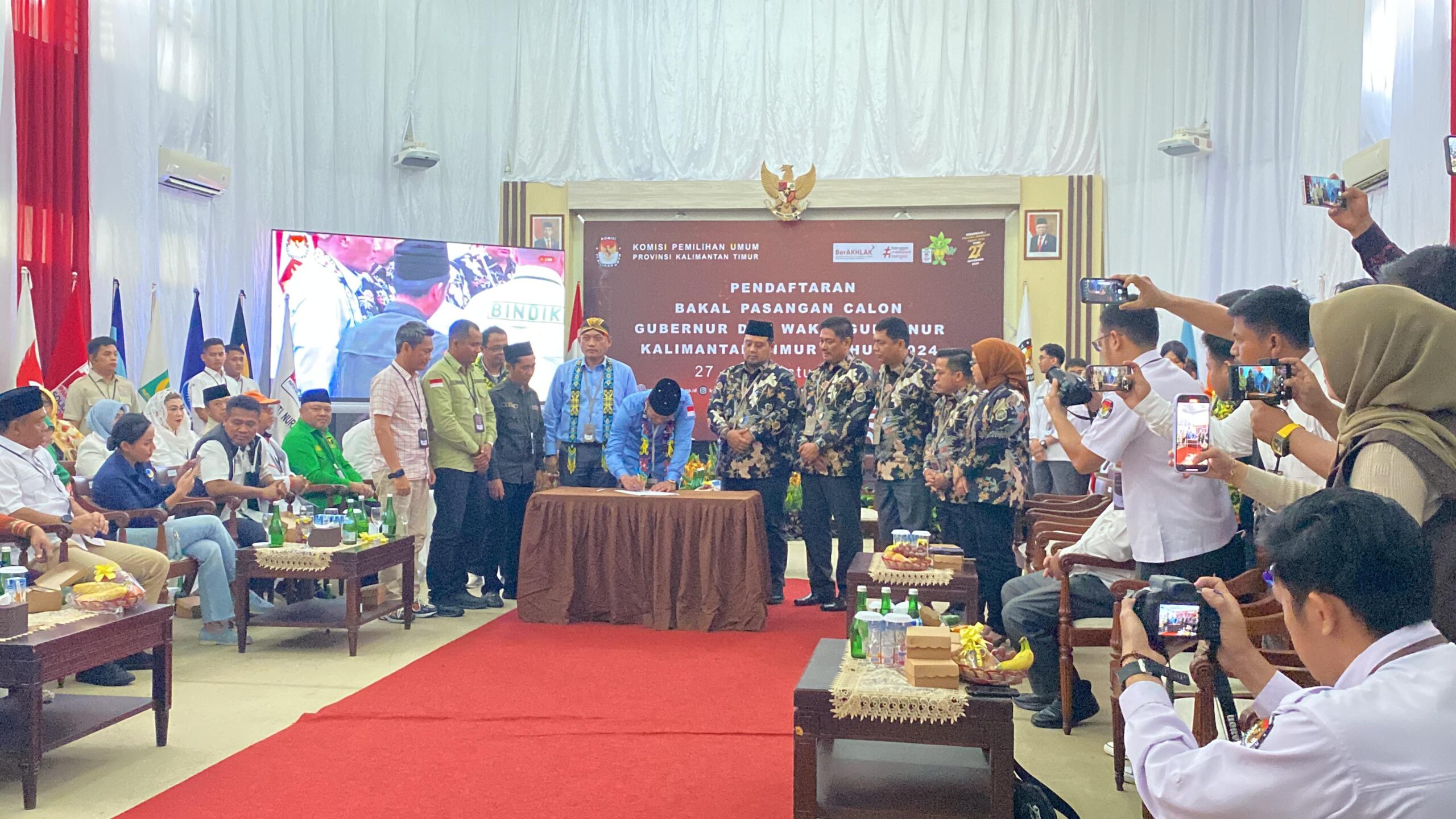 SAMARINDA – Calon Gubernur-Wakil Gubernur Kalimantan Timur, Rudy Mas’ud dan Seno Aji mendaftar ke KPU Kalimantan Timur (Kaltim), Kamis (29/8/2024).