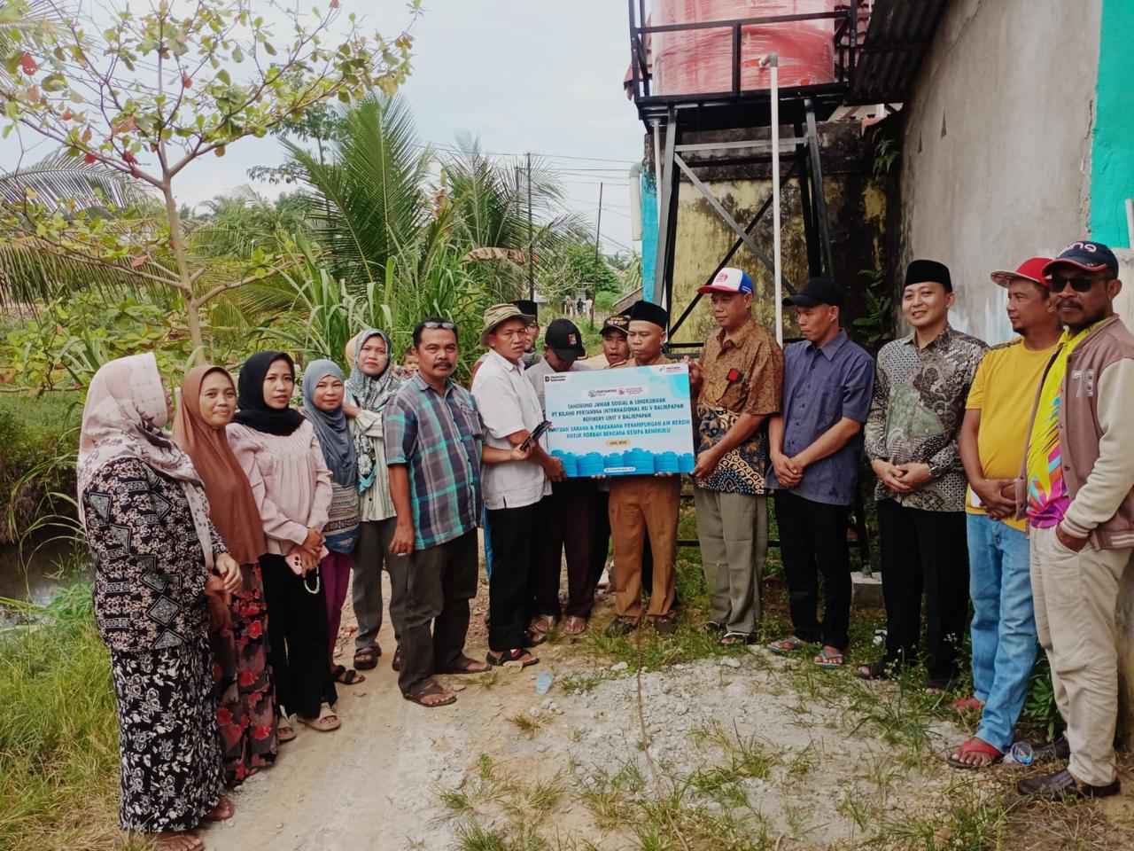 Perwakilan warga RT 50 menerima bantuan tandon air dari PT KPI RU V Balikpapan dan Baitulmaal Munzalan Indonesia, Bengkulu (24/6).