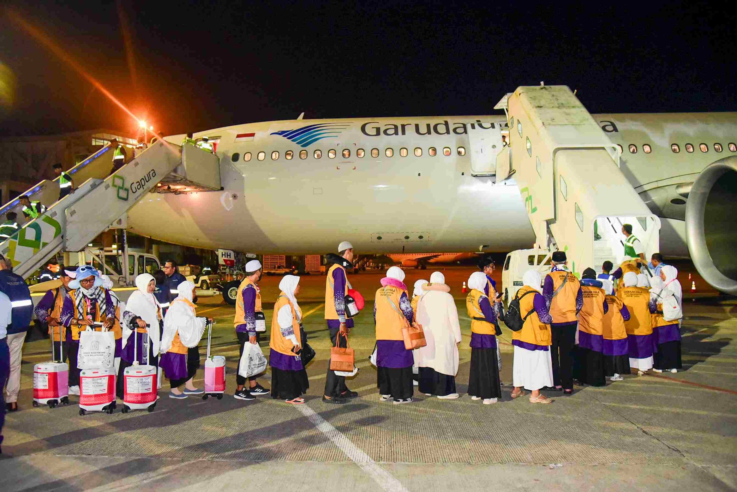 Balikpapan – Fajar belum sepenuhnya menyingsing ketika haru dan khidmat mulai menyelimuti Bandara SAMS Sepinggan Balikpapan. Raut wajah penuh harap dan doa terpancar dari 356 calon Jemaah Haji asal Balikpapan yang pagi ini secara resmi diberangkatkan ke Tanah Suci. Bersama 4 petugas dari Panitia Penyelenggara Ibadah Haji (PPIH), mereka menaiki pesawat Garuda Indonesia GA 4101 bertipe A330-900 Neo dengan tujuan Madinah, menandai dimulainya rangkaian pemberangkatan Haji embarkasi Balikpapan tahun 2025.