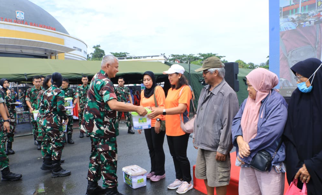 Tak hanya menyajikan olahraga dan hiburan, TNI juga menunjukkan kepeduliannya lewat pembagian 200 paket sembako kepada masyarakat. Bantuan ini disalurkan melalui tiga Koramil jajaran Kodim 0905/Bpp. “Bagi kami, hujan ataupun panas tidak jadi penghalang untuk selalu bersama rakyat,” ujar Serka Eddy, Babinsa Koramil 0905-03/Bpp Timur.