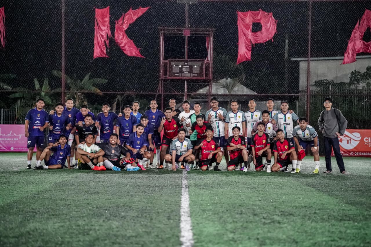 Karang Taruna Nusantara Maju Kariangau dan Karang Taruna Giri Mukti PPU berfoto bersama usai fun minisoccer di Lapangan Borneo Anfield Balikpapan, Minggu (8/2/2026).
