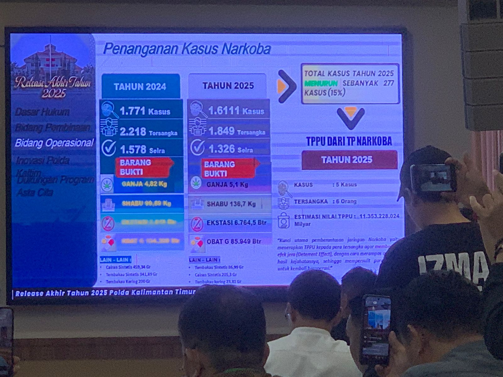 Balikpapan – Sepanjang tahun 2025, Polda Kalimantan Timur mencatat keberhasilan dalam penanganan kasus narkoba. Meski jumlah kasus menurun dibanding tahun sebelumnya, dari 1.771 menjadi 1.611 kasus, Kapolda Kaltim Irjen Pol Endar Priantoro menekankan bahwa kualitas pengungkapan justru meningkat.