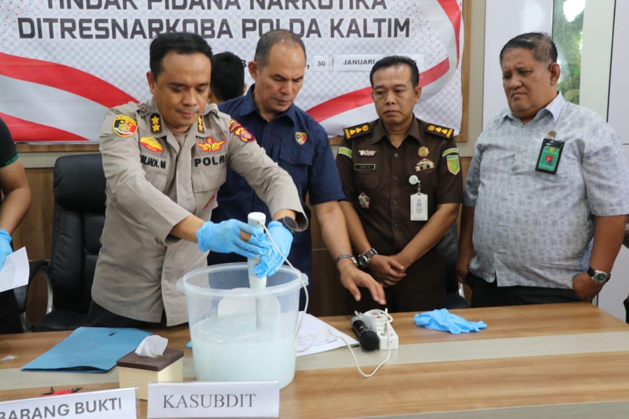 Hal ini disampaikan pada saat pelaksanaan pemusnahan yang dipimpin oleh Kasubdit II Ditresnarkoba Polda Kaltim. AKBP Risky, yang didampingi Kasubbid Penmas Bidhumas Polda Kaltim, AKBP Musliadi Mustafa serta dihadiri Kejaksaan Tinggi Kaltim dan Pengadilan Negeri Balikpapan, Kamis (30/1/2025).