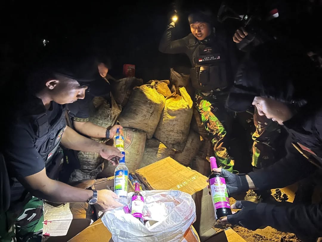 Satgas Pamtas RI-Malaysia Kembali Gagalkan Penyelundupan Ratusan Miras Ilegal