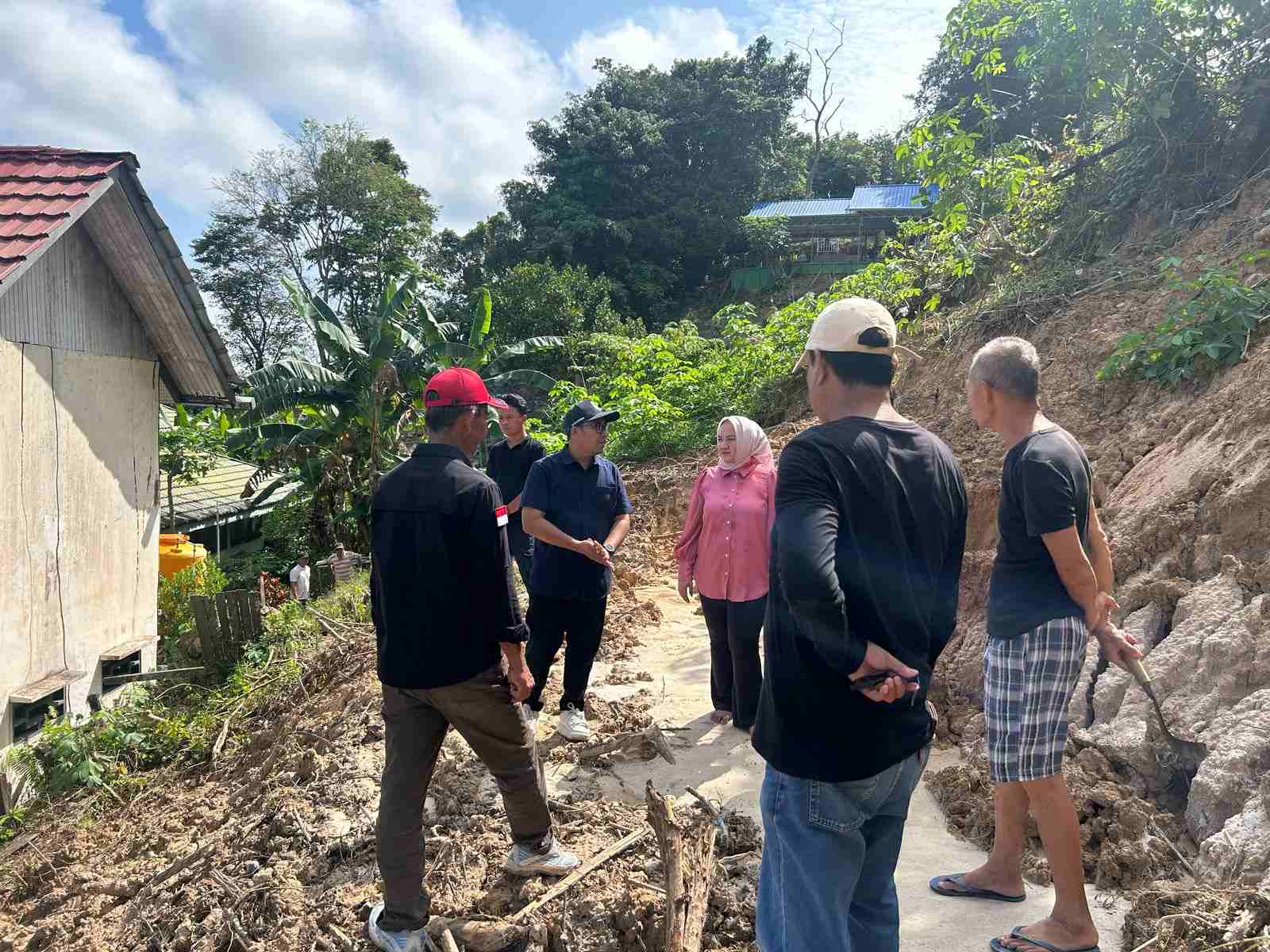 Dalam peninjauan itu, Rahmat dan Masniyah menempuh medan terjal di bawah terik matahari untuk melihat langsung dampak kerusakan. Longsor yang terjadi sejak sepekan terakhir telah merusak satu rumah warga, sementara tiga rumah lainnya terancam mengalami hal serupa jika tidak segera dilakukan penanganan darurat.
